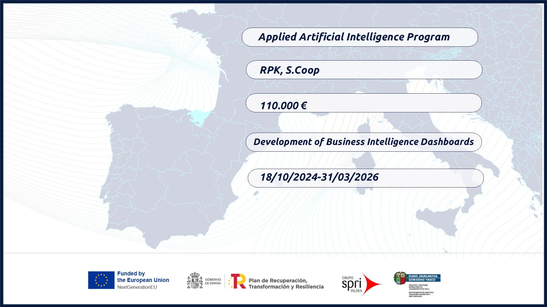 RPK Group continues to invest in innovation and digital transformation by developing Artificial Intelligence (AI)-powered Business Intelligence (BI) dashboards under the “Artificial Intelligence and Data Strategy 2024” support program, promoted by SPRI and funded by European funds. This project enables more advanced data management and improves strategic decision-making.